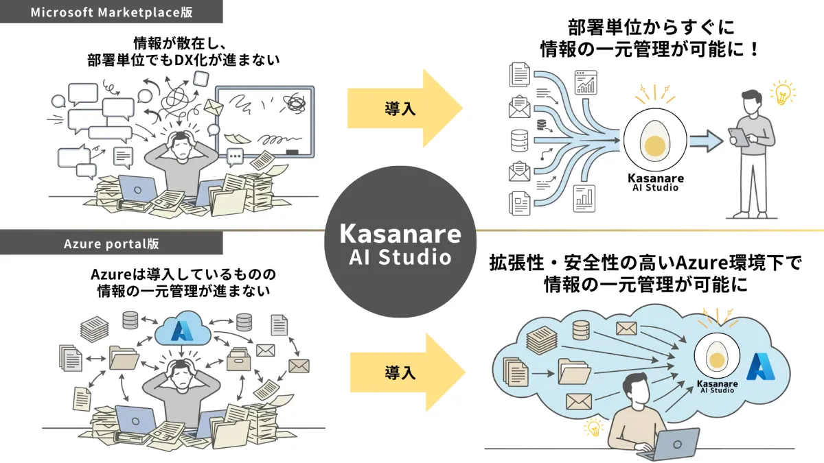 「現場から未来をつくる」というカサナレのビジョンのもと、Kasanare AI StudioはAIが一部の先進企業だけのものではなく、一般的なインフラとして普及していくことを目指しています。Microsoft Marketplaceを通じ、この新サービスがさらなる多くの企業に届くことを期待しています。