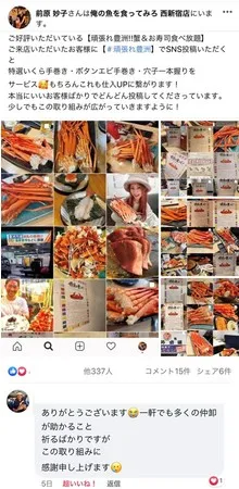 東京の西新宿に位置する居酒屋が、新型コロナウイルスの影響による緊急事態宣言の延長を受け、生産者や仲卸業者への支援策を発表しました。特に注目されるのが、この居酒屋で提供される90分食べ放題のズワイガニコースです。