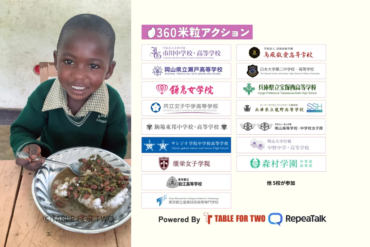 「360米粒アクション」は、2025年夏に参加校が決定し、秋から冬にかけてチャレンジ期間を設けています。今年度の結果は、2025年12月から翌年1月にかけて発表され、再度TABLE FOR TWO Internationalを通じて寄付が行われる計画です。