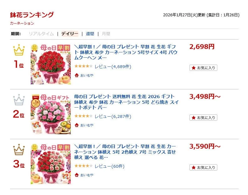 2026年の母の日が近づく中、『おいもや』が大手ECモール『楽天市場』のカーネーションランキングにおいて1位から3位を独占する成功を収めています。この快挙は、50年以上の歴史を持つ静岡県掛川市に本社を置く同社の努力と工夫の結果です。なぜ、スイーツ専門店である『おいもや』が、お花屋さんを抑えてここまで評価されるのでしょうか?