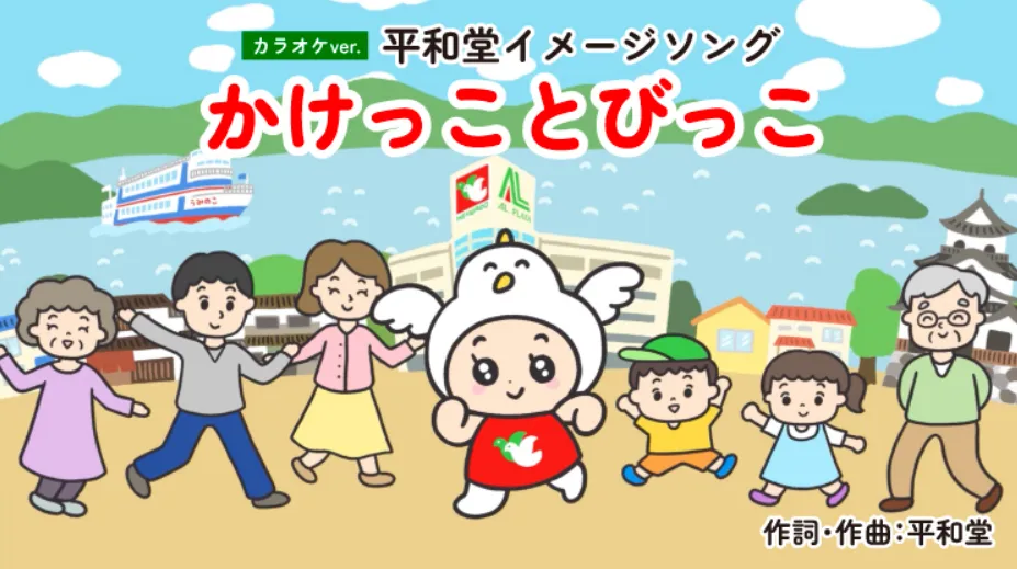 「かけっことびっこ」をカラオケで楽しむ際には、かわのまきこさんが描いた「はとっぴー」を含むアニメーション映像が流れ、視覚的にも楽しませてくれる内容となっています。また、この音楽映像は平和堂の公式SNSでも配信され、さらなる楽しみを提供します。