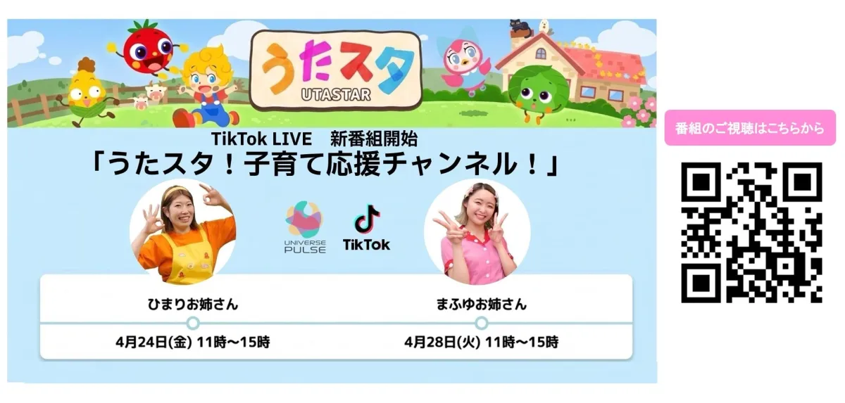 株式会社UNIVERSE PULSE(以下、UNIVERSE PULSE)が、人気子育て支援YouTubeチャンネル「うたスタ」とのコラボレーションにより、2026年4月24日より新たなライブコマース番組、「うたスタ!子育て応援チャンネル!」をTikTok LIVE上で開始します。本番組は、知育玩具や育児関連商品を取り扱い、子育て世代向けの情報や商品紹介を行うものです。このプロジェクトの背景には、最近のSNSを通じた購買行動の普及があり、特に子育て世代はリアルタイムでの情報提供を求めていることがあります。