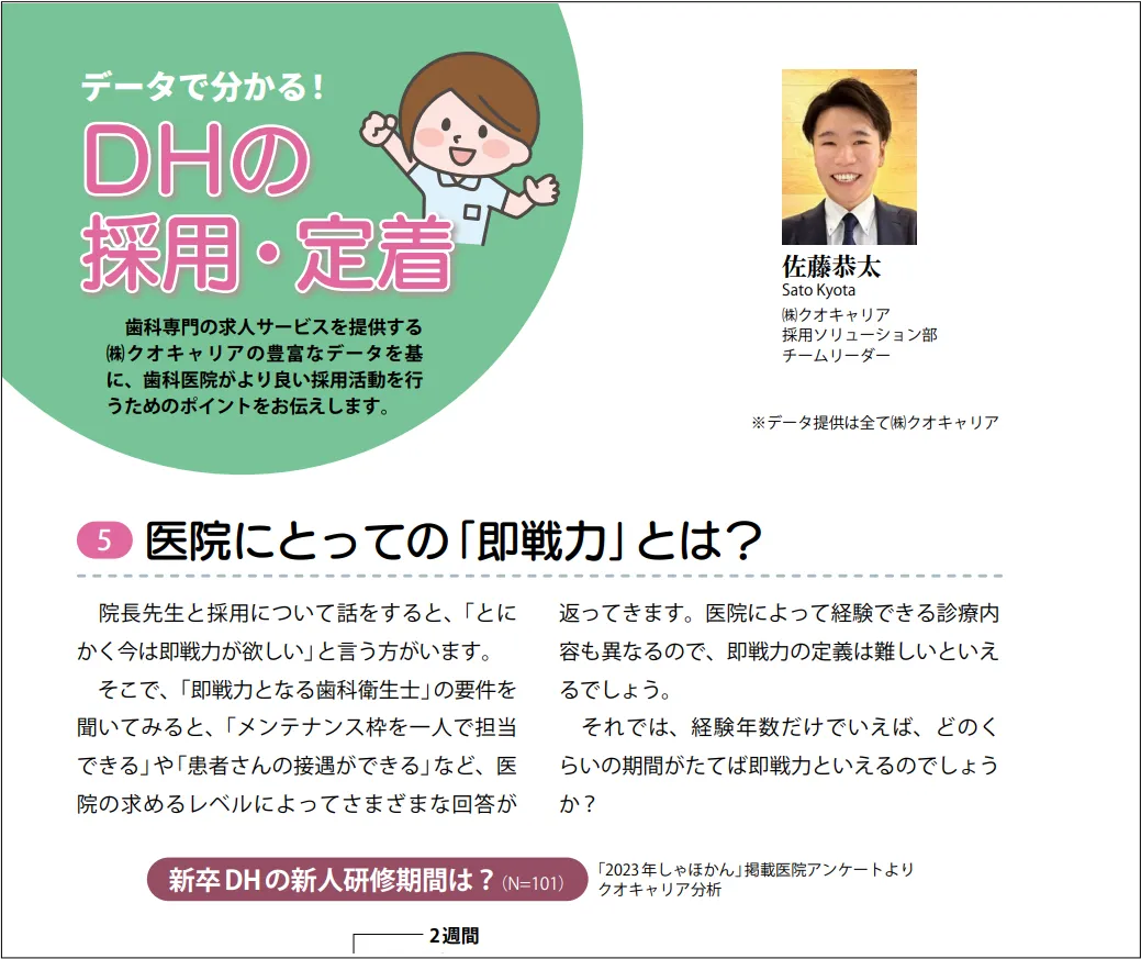 株式会社クオキャリアは、業界の人材採用を支援する企業として、歯科業界の情報誌『アポロニア21』の2025年9月号において連載記事を掲載しています。この号のテーマは「医院にとっての“即戦力”とは?」です。
