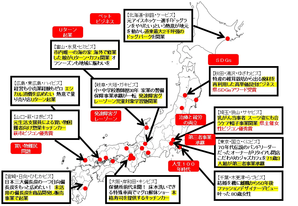 また、全国各地に広がるビズモデル型支援施設でも、多様な起業家が次々と誕生しています。例えば大阪府の「寿司キッチンカー」や、秋田県の「廃菌床で育てるカブトムシ」という新たなビジネスもその一環です。これらの事例は、ひと昔前よりも起業へのハードルが下がったことを示しています。しかし、実際には経営未経験者にとって、新たな事業の立ち上げは決して簡単ではありません。