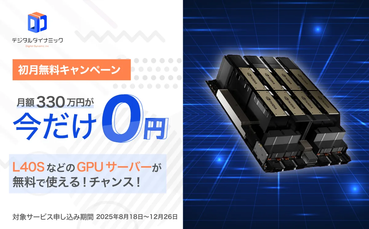 デジタルダイナミック株式会社が自社開発のGPUサーバーの運用を開始し、その一環として「初月無料キャンペーン」を展開しています。このキャンペーンは、AI開発企業を対象に、最大330万円の月額利用料を初月0円で提供するというものです。サーバーの性能とともに、AIクラスタの保守管理能力を向上させたデジタルダイナミックは、日本のAI市場における存在感を高めることを目指しています。