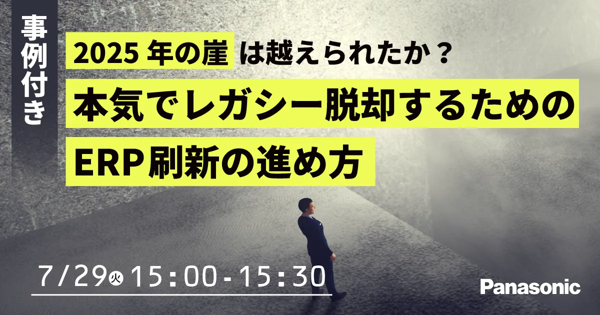 企業が直面する新たな経営課題として「レガシーシステムの脱却」が挙げられます。特に、2025年に向けたDX(デジタルトランスフォーメーション)の推進は、多くの企業における最重要テーマとなっています。そんな中、パナソニック インフォメーションシステムズ株式会社は、2025年7月29日(火)にオンラインセミナー「【事例付き】『2025年の崖』は越えられたか?本気でレガシー脱却するためのERP刷新の進め方」を開催します。