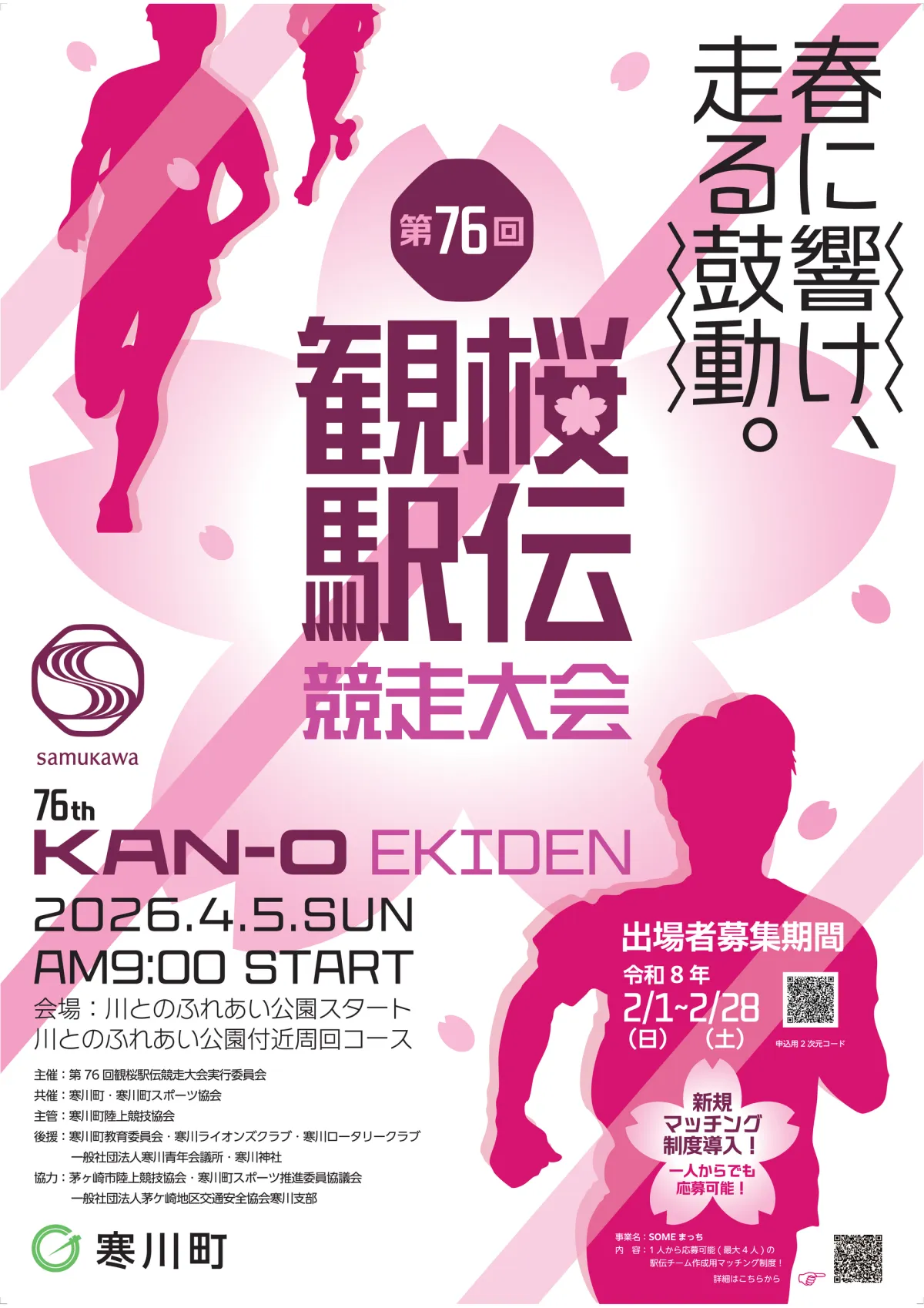 神奈川県寒川町で毎年開催される「観桜駅伝」は、春の訪れを告げる伝統的な行事です。昭和26年に初めて行われて以来、今や春の風物詩として定着し、今年、76回目を迎えることになりました。観桜駅伝は、地域の住民やランナーたちに親しまれており、賑やかな雰囲気の中で行われるこの大会には、昨年も80チームが参加し、熱い戦いを繰り広げました。