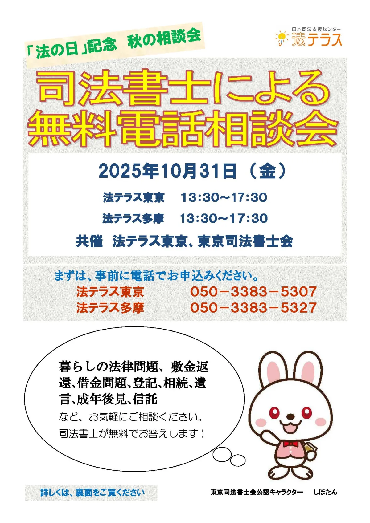 法の日にちなんだ特別な無料電話相談会を提供することになりました。このイベントは、法律に関する悩みや相談がある方々に向けて、専門の司法書士がアドバイスする貴重な機会です。