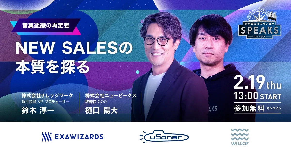 2026年2月19日、営業に関わるすべてのビジネスパーソンに向けたオンラインイベント「SPEAKS -営業リーダーズサミット-」が開催されます。このサミットは、株式会社ニューピークスが主催し、多様なセッションを通じて営業の最前線を学ぶ機会を提供します。