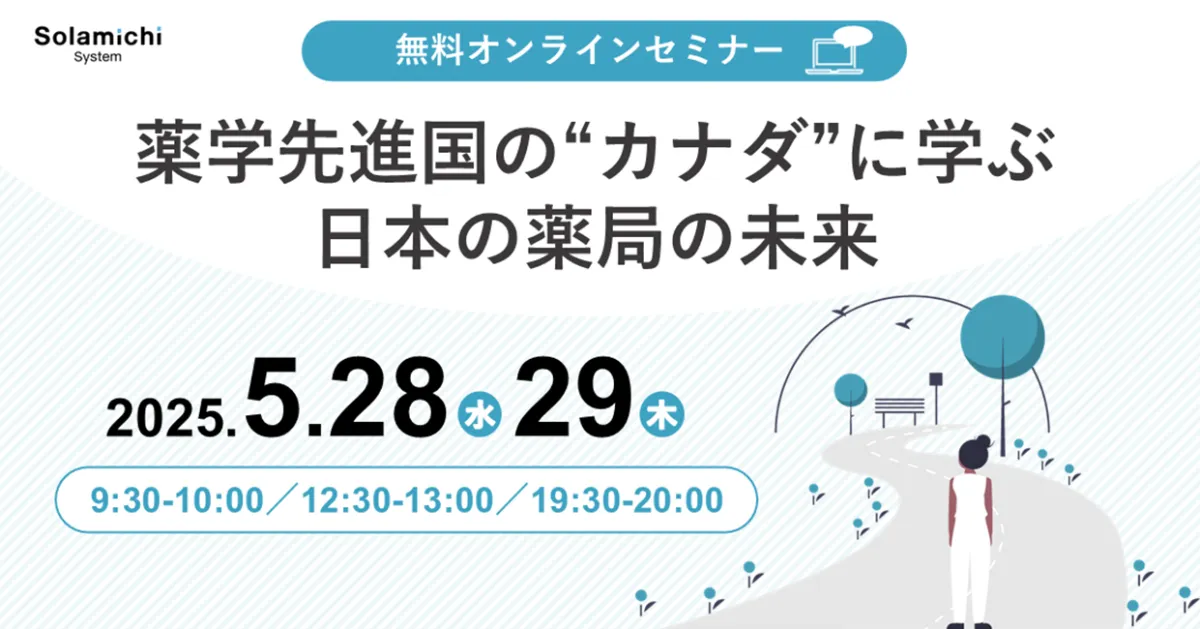 株式会社ソラミチシステムが主催する無料オンラインセミナー「薬学先進国の“カナダ”に学ぶ日本の薬局の未来」についてご紹介します。このセミナーは2025年5月28日(水)と29日(木)の2日間、全6回のセッションが開催されます。
