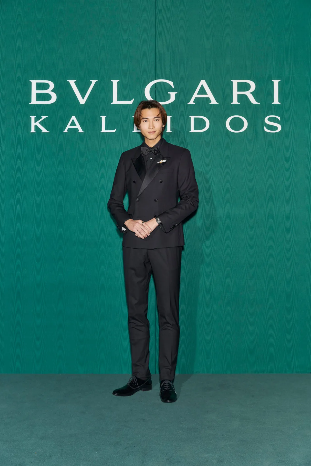 庄司は、ブルガリ特有のセンセーショナルな映像や空間演出によって、メゾンの歴史と伝統を全身で感じられる体験をしたと続けました。「そのしなやかな気品が全体のルックにメリハリを加えてくれる」と、彼が着用していたブローチとリングについて語りました。