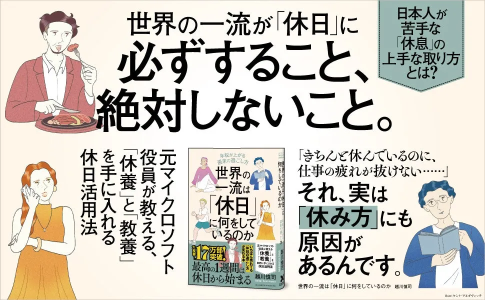 越川氏は、マイクロソフトにて業務執行役員を担った経験を基に、世界のビジネスリーダーたちがどのように休息を取っているのかを明らかにしています。彼らは休日を「何もしない時間」ではなく、「エネルギーをチャージするための時間」として利用しているのです。