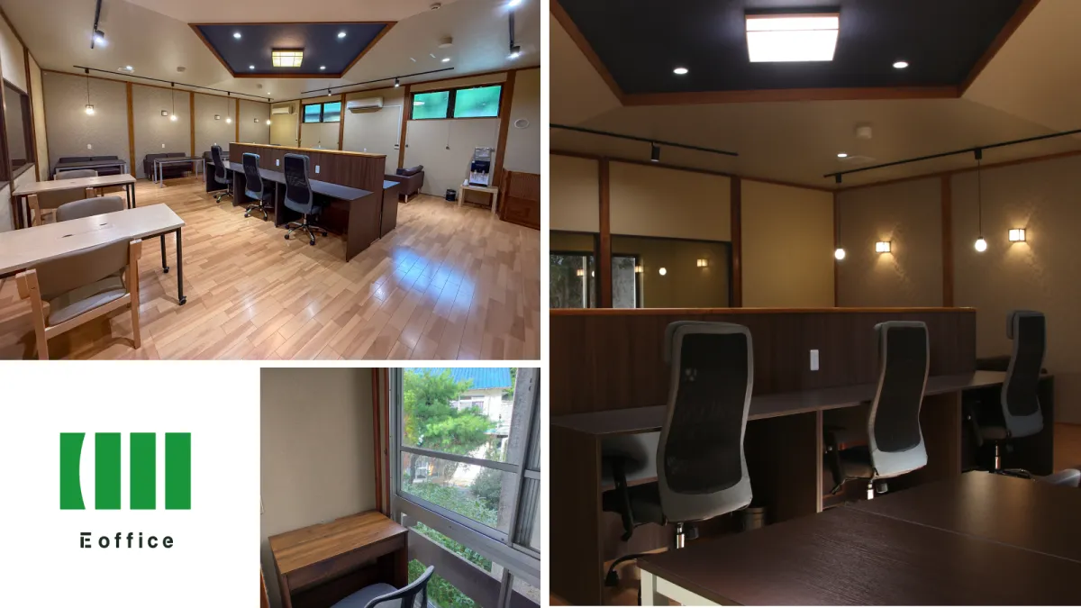 「いいオフィス厚木七沢」は、江戸末期から続く老舗旅館の風格を残しつつ、現代的なデザインを取り入れています。約60㎡の空間は、開放感あるオープンスペースから細かく区切られた個室・半個室まで、多様な利用シーンに対応しています。また、利用者が集中できるように設計された内装には、快適さが追求されています。