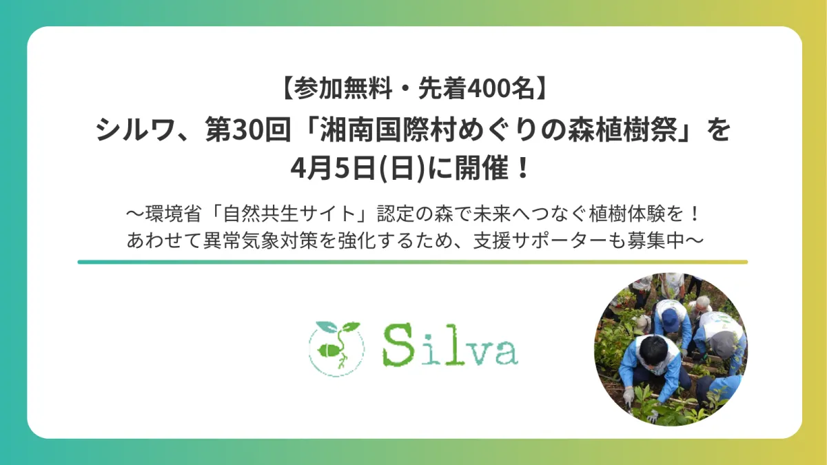 2026年4月5日(日)に、非営利型一般社団法人Silva(シルワ)が主催する「第30回湘南国際村めぐりの森植樹祭」が開催されます。本イベントは、持続可能な森林再生を目指しており、地域の人々や企業が協力して都市近郊に豊かな森を育む取り組みの一環です。
