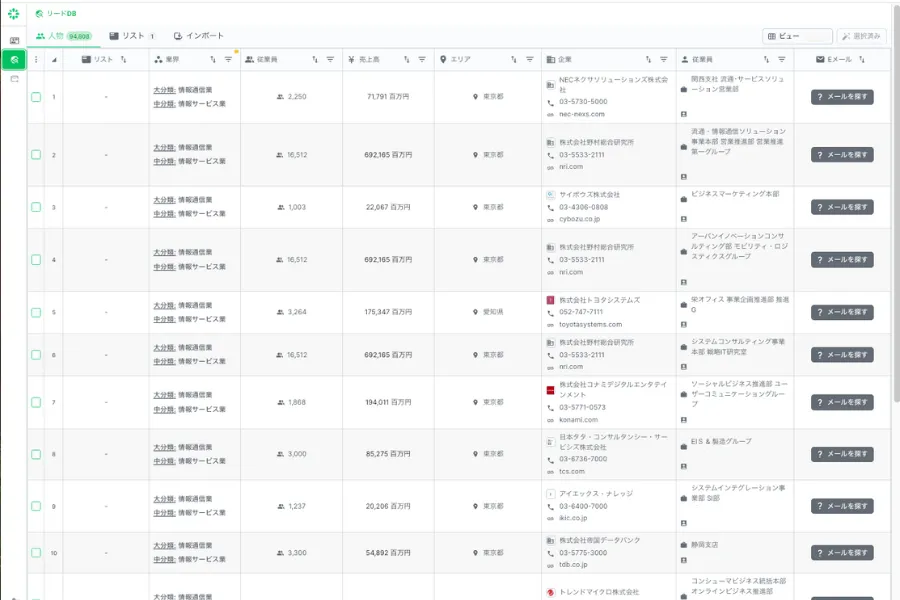 さらに、当社独自のAI技術により、ターゲット企業のキーパーソンの連絡先情報を効率よく取得できるため、従来リーチできなかった層へのアプローチも実現しました。これにより、新規リードの獲得や商談機会を増やすことが期待できます。