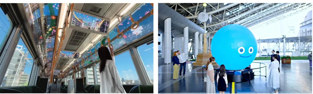 一方、「LINQ VISION」は、最新の球体LEDビジョン技術を用いた作品で、多角的な視野で視覚的な体験を提供します。これにより、通行人や乗客にインパクトを与えることができます。このビジョンは、情報の発信だけでなく、観客を楽しませたり、地域の魅力を伝えたりする役割も担っています。