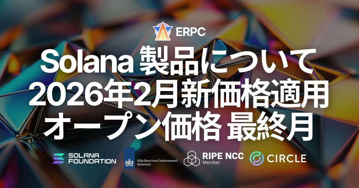 ERPCは、2026年2月からSolana向けに提供するインフラサービスの価格を改定することを発表しました。この変更に伴い、2026年1月が「オープン価格ラストセール期間」と位置づけられ、新しい契約が現行のオープン価格で可能になります。この機会を逃さないように、多くのユーザーが注目しています。