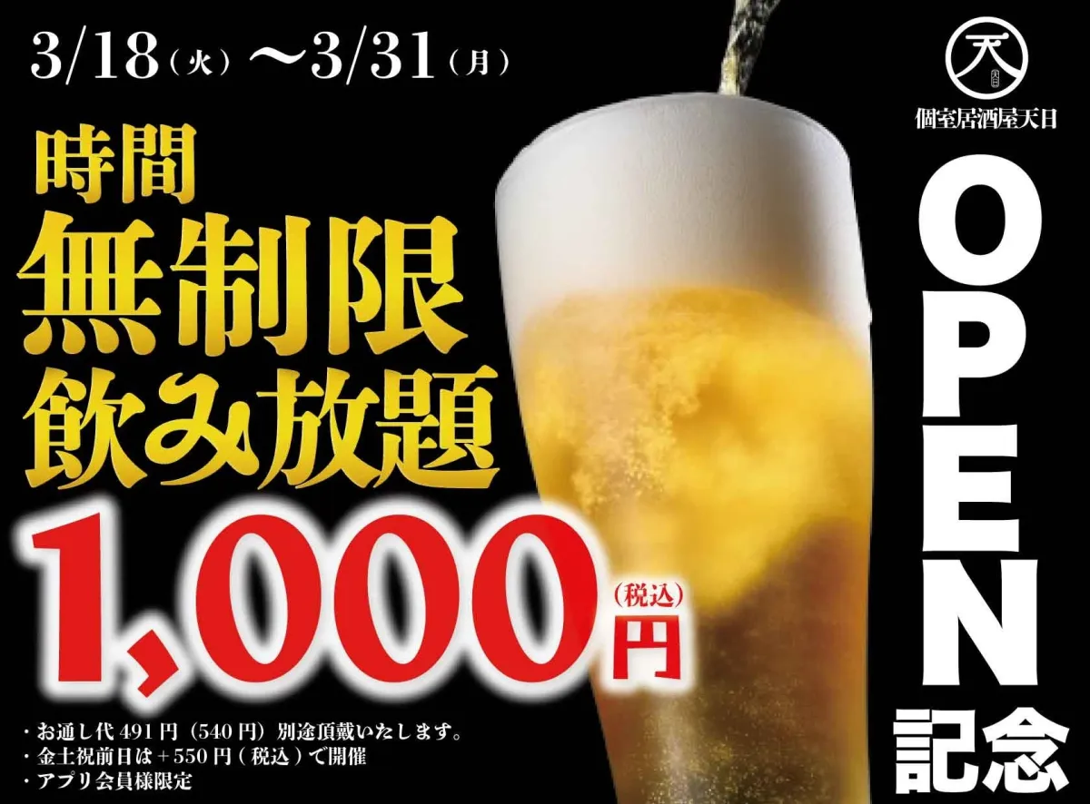 2025年3月18日、神奈川県厚木市に新たな居酒屋がオープンします。それが『個室居酒屋 天日 本厚木店』です。運営するのは、首都圏を中心に18店舗を展開する株式会社ビリオンフーズ。この新店のオープンを記念して、期間限定の特別イベント「時間無制限飲み放題1,000円」が実施されることが決定しました。このイベントは3月18日から31日までの期間中で、居心地の良い個室で多種多様な飲み物を楽しむことができます。