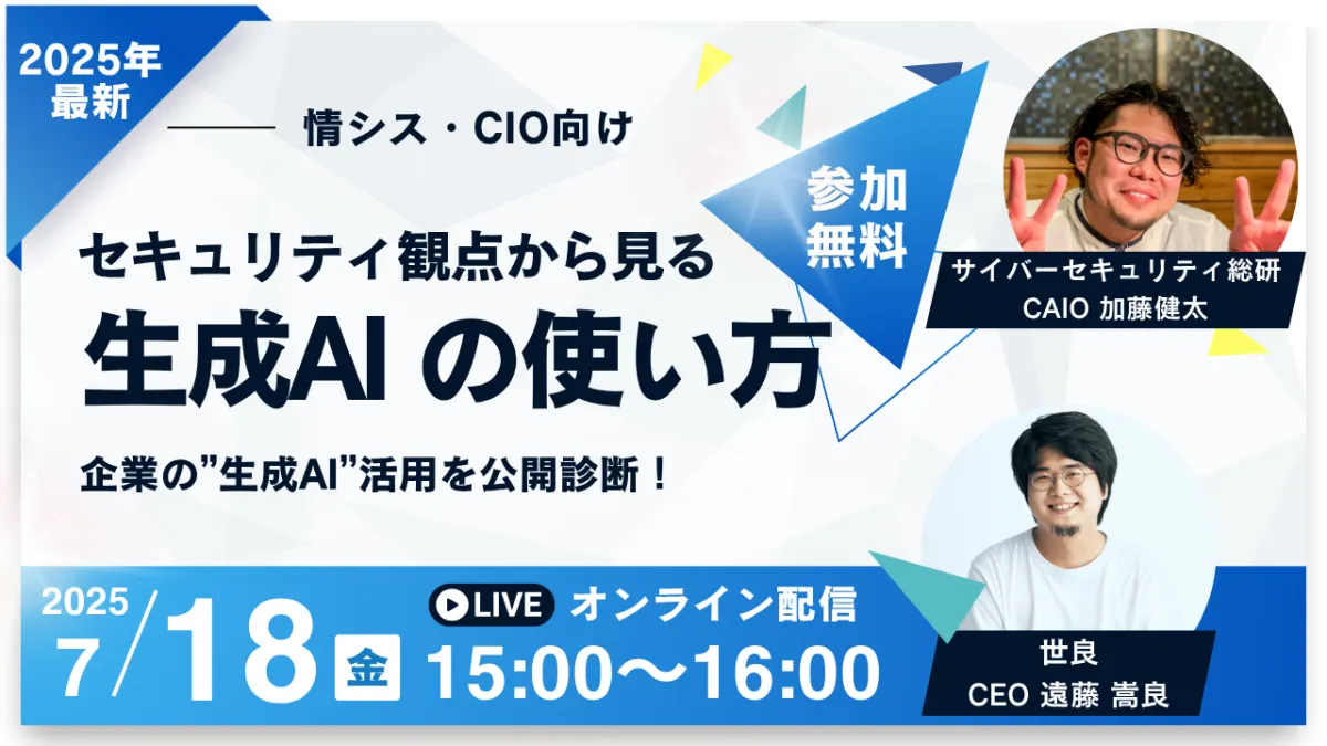 企業の生成AI導入が加速する中、セキュリティ対策やガバナンスの重要性が大きな注目を集めています。特に、生成AIの活用に際しては、情報の取り扱いや設定方法の正確性が求められます。そこで、2025年7月18日(金)に、オンラインで開催されるセミナーに参加する絶好の機会を提供します。このウェビナーは無料で事前登録が必要であり、企業の情報システム担当者やセキュリティ部門の方々を対象としています。