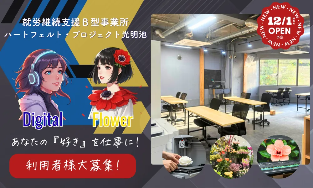 2025年12月1日、大阪府和泉市に新たな就労継続支援B型事業所「ハートフェルト・プロジェクト光明池」が開所を迎えます。この事業所では、一人ひとりの「好き」と「得意」を育むために、「フラワーショップ」と連携したお花のお仕事やITスキルを活かしたデジタルものづくりを行います。心に寄り添った支援を提供しながら、利用者が社会で活躍できる場を整えています。
