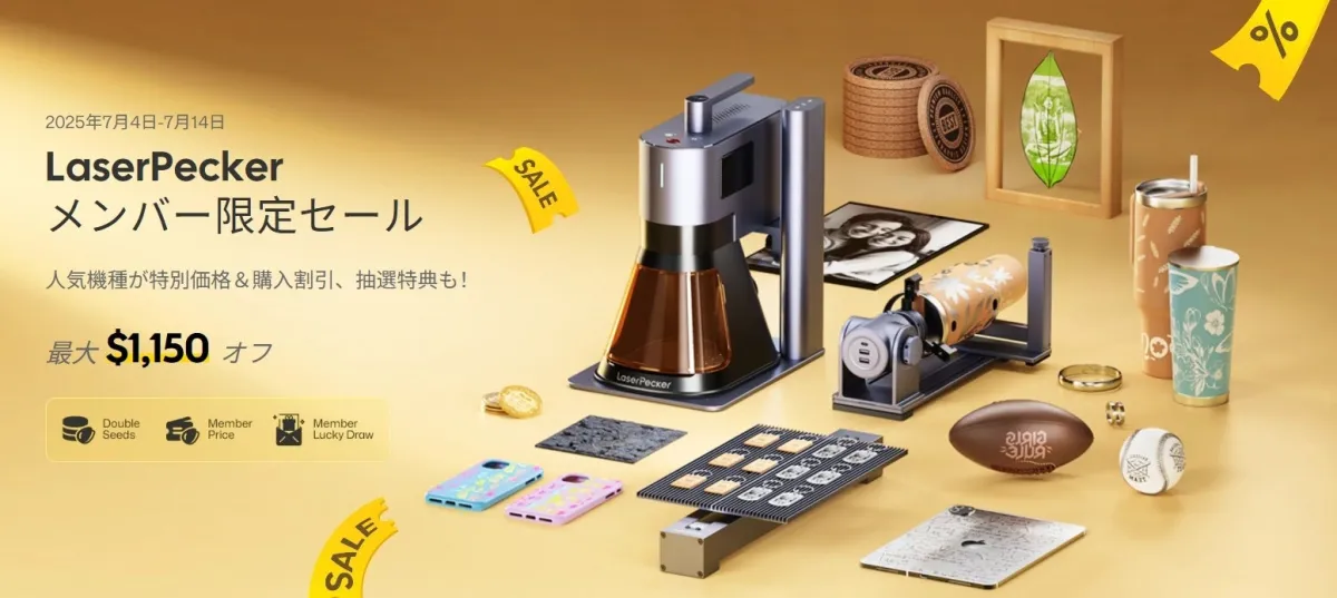 家庭用レーザー彫刻機ブランド「LaserPecker(レーザーペッカー)」が、2025年7月4日から7月14日まで公式サイトにて「メンバー限定セール」を開催します。この機会に、様々な製品をお得に手に入れるチャンスです。