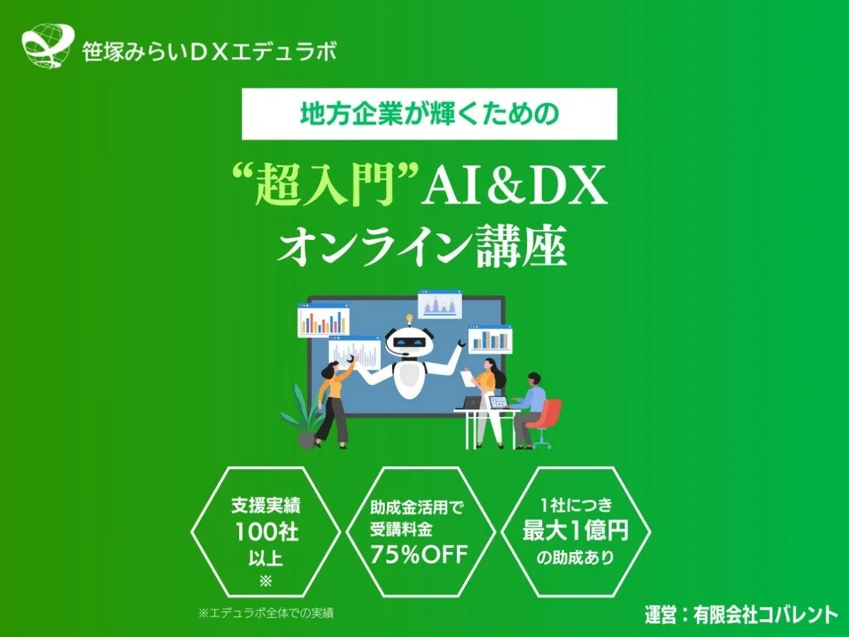 有限会社コバレント(東京都渋谷区)は、地域みらい総研株式会社(東京都港区)との協力のもと、DX(デジタルトランスフォーメーション)やAIに特化した研修サービス『笹塚みらいDXエデュラボ』を開始しました。この取り組みは、主に自社グループ企業を対象としたのち、地域や全国の企業へとサービスを拡げる計画です。