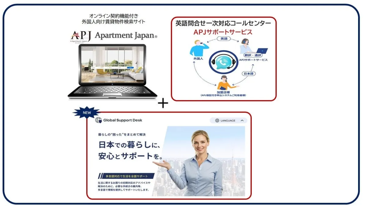 東京都豊島区に本社を置くRenxa株式会社は、DID-GLOBAL株式会社が運営する外国人向け賃貸DXプラットフォーム「Apartment Japan®(APJ)」に新たな生活サポートサービス「Global Support Desk」を導入しました。このサービスは、外国人入居者が安心して生活できるよう、多言語対応で手続きやお困りごとの支援を行うものです。
