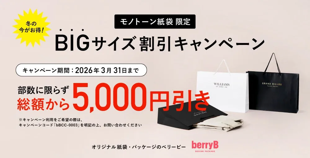 最近、株式会社DRIVEが運営するオリジナル紙袋メーカー「berryB」が、特別割引キャンペーンを発表しました。このキャンペーンでは、2026年3月31日までの期間中、オリジナルのモノトーン紙袋BIGサイズに対して5,000円の割引を提供しています。特にアウターや厚手の商品など、大きめのアイテムを収納したいというニーズに応えるため、実用性の高いこのBIGサイズが注目されています。