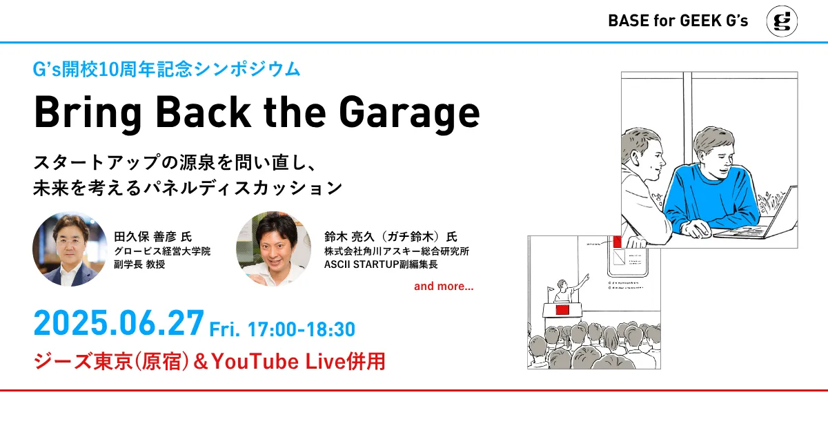 2025年6月27日(金)の午後5時より、東京都原宿に位置するジーズ東京校とオンラインで、記念シンポジウム「Bring Back the Garage」が開催されます。これは、デジタルハリウッド株式会社が運営する教育機関「G’s(ジーズ)」の開校10周年を祝う特別なイベントです。