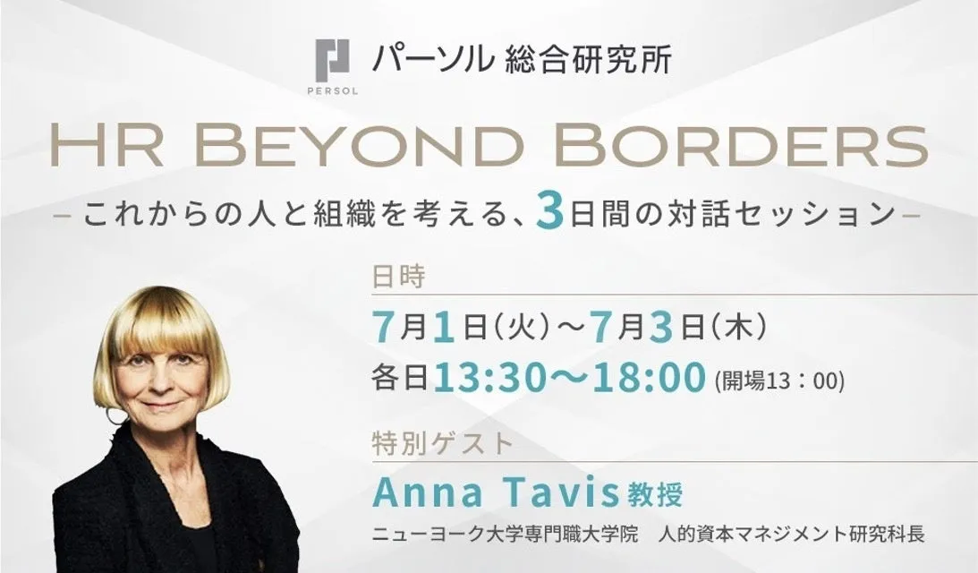 本イベントでは、ニューヨーク大学の専門職大学院で人的資本マネジメント研究科の所長を務めるAnna Tavis教授が特別ゲストとして参加し、同時通訳付きで先進的なHRの知識に触れる機会が設けられます。この3日間で、人事や組織マネジメントの未来について、一緒に考える機会が提供されます。