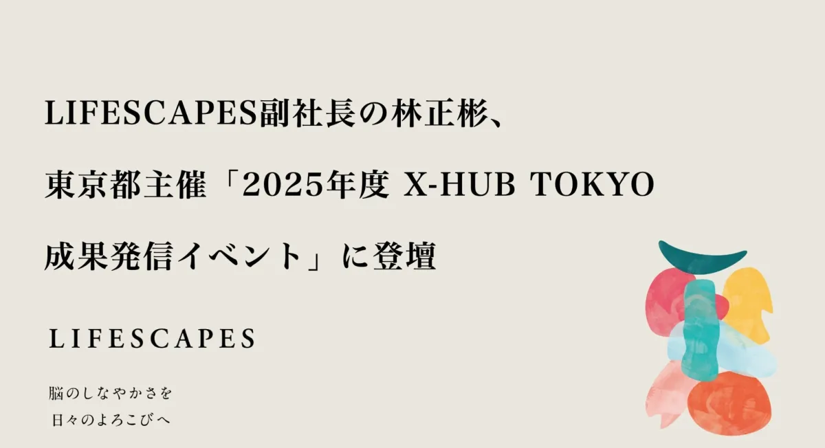 2026年3月16日、LIFESCAPESの取締役副社長である林正彬氏が、東京都主催の「2025年度 X-HUB TOKYO 成果発信イベント」に登壇し、パネルディスカッションに参加しました。このイベントは、東京都が推進するスタートアップ支援プログラムで、都内の企業が世界のイノベーションエコシステムに接続される機会を提供します。