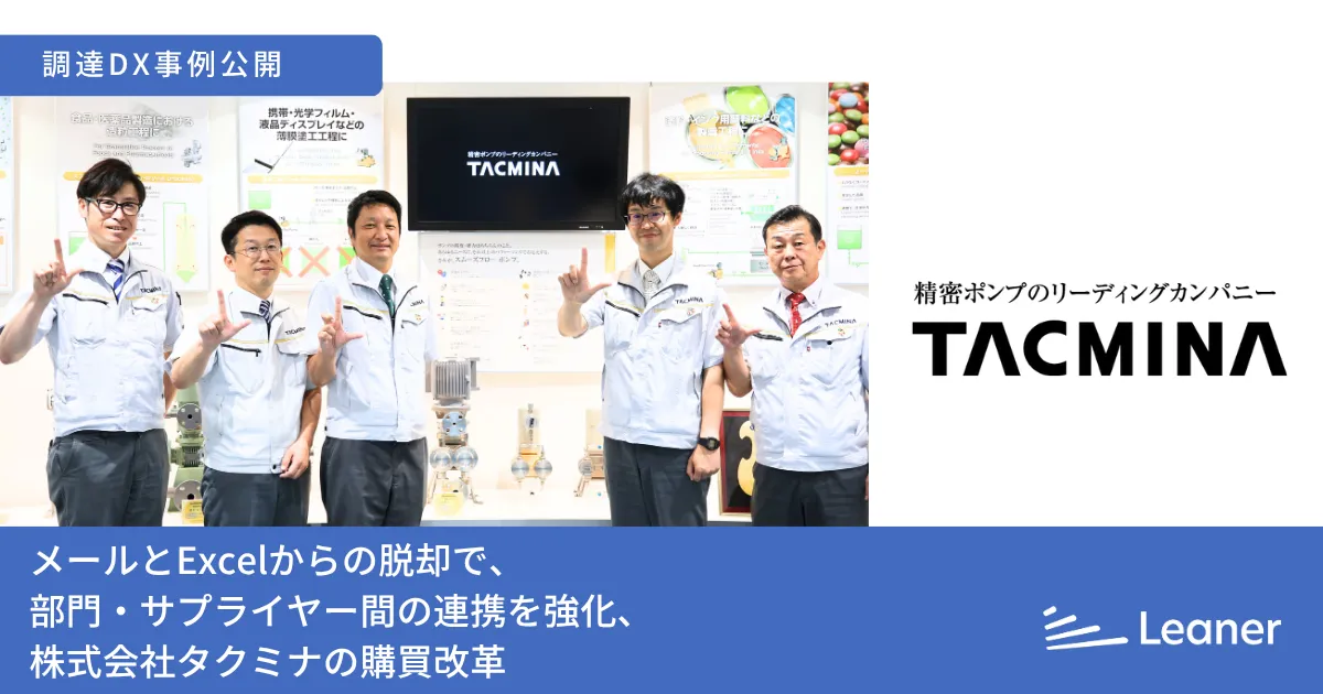 このように、リーナーの導入を通じて、株式会社タクミナは購買業務の大幅な効率化と部門間の連携強化を実現しました。これからも、リーナーを活用してさらなる事業の成長を目指すことでしょう。