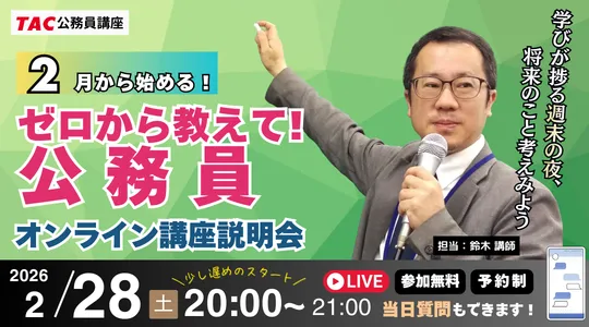 TACのオンラインガイダンスは、公務員試験を志望する全ての方にとって貴重な機会です。鈴木講師の豊富な経験と知識を活かし、受講生一人ひとりに合った学習法を提案します。この機会を逃さず、ぜひ参加を検討してください。公務員試験の合格へ向けて、一歩踏み出しましょう!