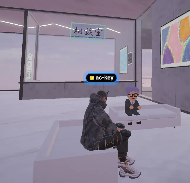 メタバース相談です。ここでは、ユーザーは自分のアバターを通じて顔を出さずに相談ができ、対人恐怖を抱える人々にもアクセスしやすくなっています。文字だけでなく音声会話も可能であり、専門の支援員が寄り添うことで、安心感を提供します。