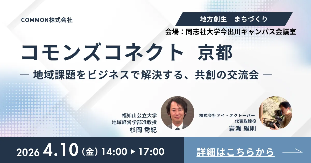 2026年4月10日(金)、同志社大学今出川キャンパスにて、地域の課題に向き合う「コモンズコネクト」が初めて開催されます。このイベントは、行政、企業、学生、地域のプレイヤーが集まり、立場を超えた連携を図ることを目的とした交流会です。