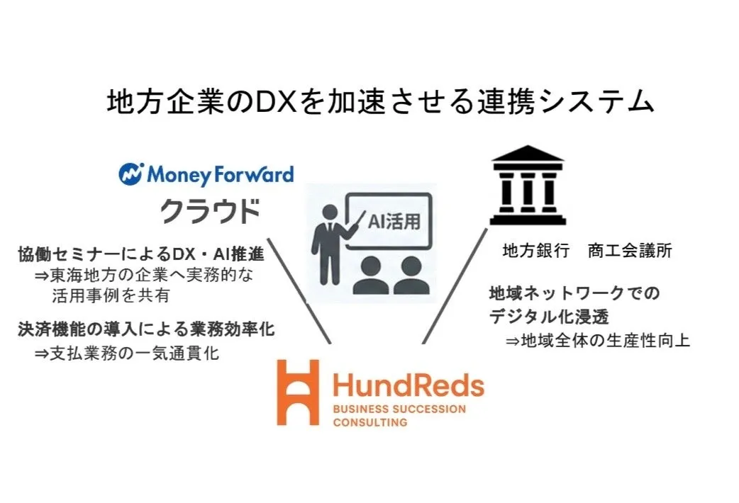 HundRedsは、マネーフォワードの豊富な知見を活かし、主に東海地方の企業に対してDX推進を支援していく方針です。企業の持続的成長をサポートすることで、地域経済全体の活性化につなげることが狙いです。