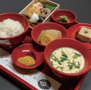 今回のお斎は、150年以上の歴史を持つ精進料理の名店『矢尾治』が提供します。老舗ならではの技術で丁寧に調理された精進料理は、動物性の食材を一切使用せず、一汁五菜を基本にしているのが特徴です。また、京野菜の聖護院大根や湯葉の炊き合わせ、さらには柴漬けなどの京都ならではの料理が楽しめる贅沢な内容となっています。