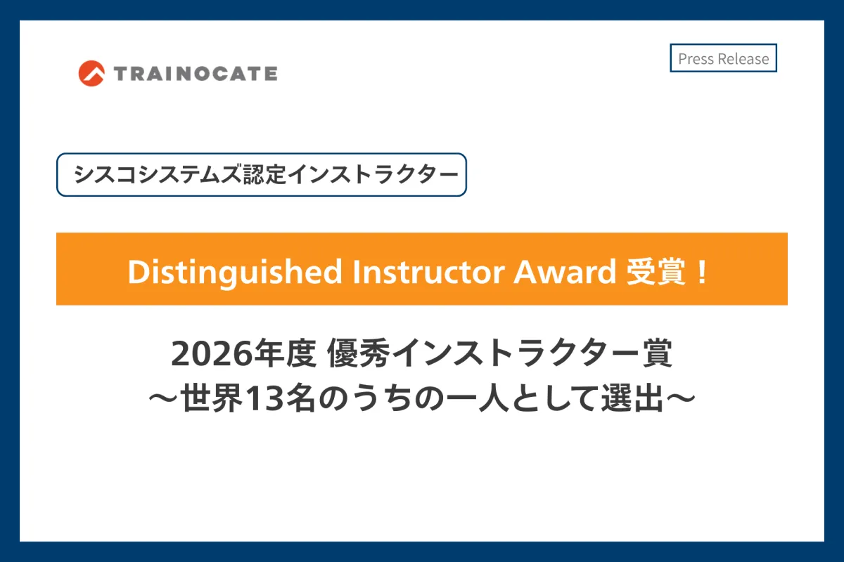 トレノケート株式会社のシスコシステムズ認定インストラクター、日鷹仁司氏が、2026年度の「Distinguished Instructor Award」を受賞しました。この賞は、業界で最も影響力のあるインストラクターに授与されるもので、今年は世界でわずか13名、アジア太平洋地域では2名のみの受賞者の一人となったことに、その特別さが際立っています。