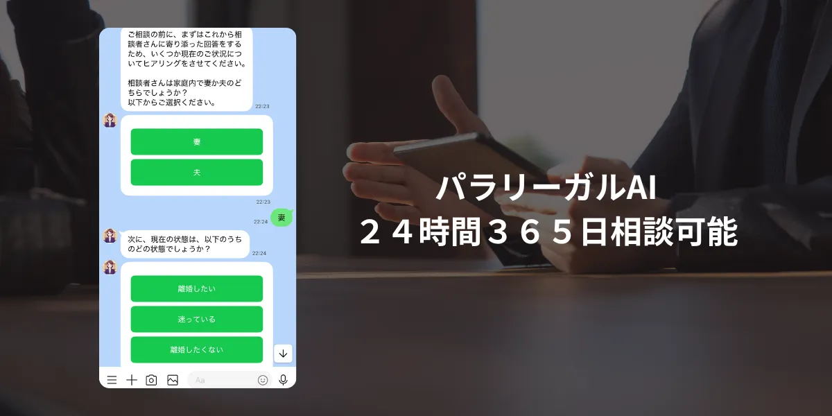 そこで登場したのが、株式会社SIGQとTORUTE株式会社が共同開発したAIチャットサービス「パラリーガルAI」です。このサービスは、LINEを通じて24時間365日、無料で離婚相談を行えるようにしたものです。人々の直面する社会課題に目を向け、相談者の状況に応じて最適な情報を提供することで、次に取るべきアクションへ導いてくれます。