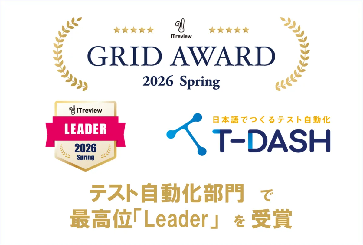 「ITreview Grid Award」は、日本国内で最大級の法人向けIT製品レビューサイト「ITreview」に寄せられたユーザーのレビューをもとに、製品の満足度や認知度を可視化する独自のアワードである。このアワードでは、一定の基準を満たした製品が選ばれ、満足度と認知度がともに高い製品には「Leader」の称号が付与される。テスト自動化ツール部門での受賞は、業界内でも特に注目されている。