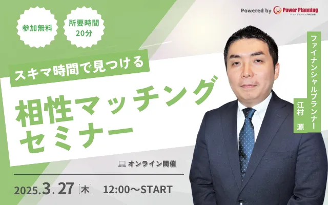 パワープランニング株式会社が運営する「アットセミナー」は、多くの方にお金についての知識を深めてもらうため、3月27日(木)12時からオンラインで「相性マッチングセミナー」を開催します。このセミナーの最大の魅力は、自分に合ったファイナンシャルプランナー(FP)を見つけられることです。