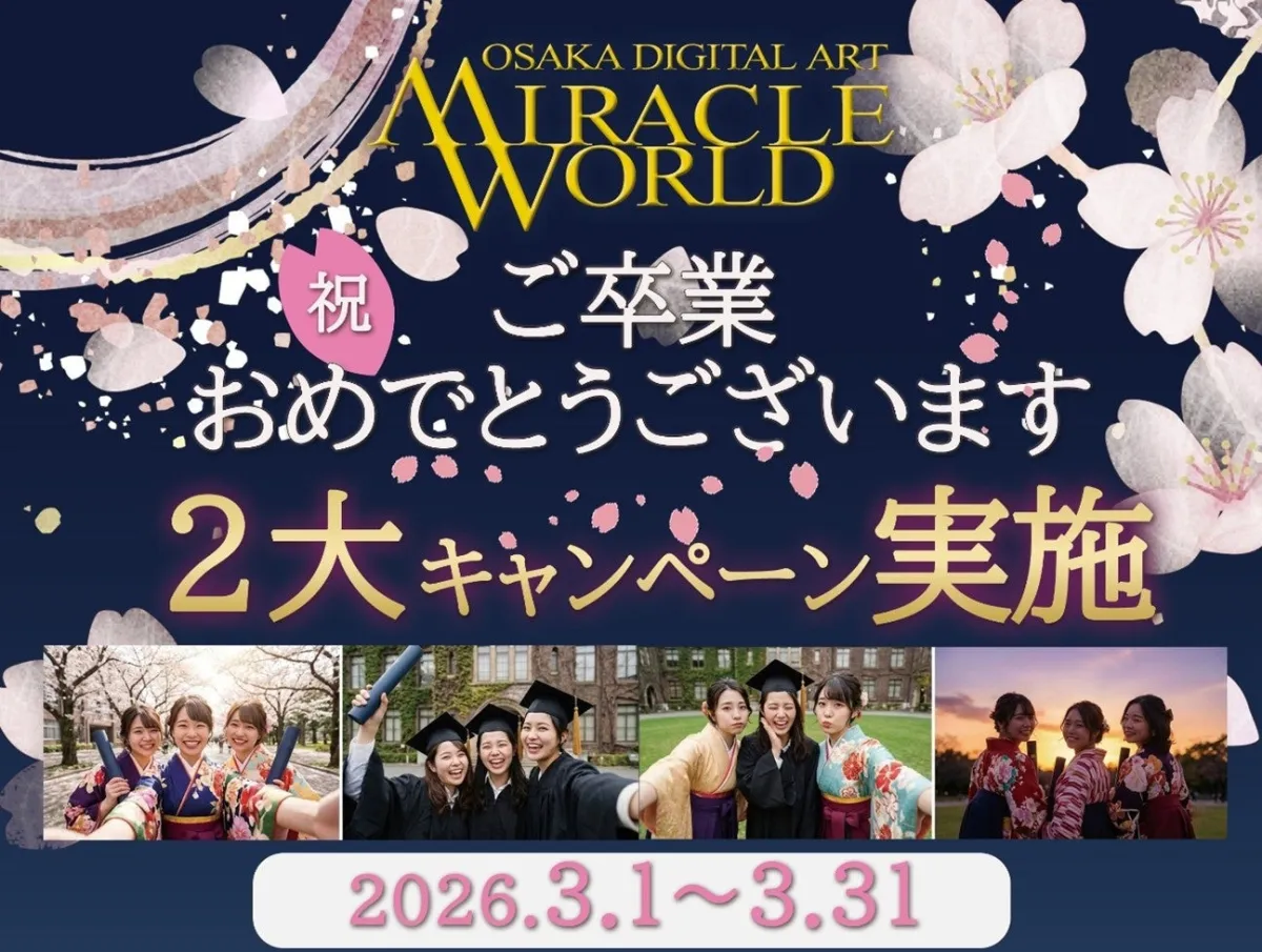 2026年3月1日から3月31日まで、大阪・なんばに位置する体験型デジタルアートミュージアム『MIRACLE WORLD』が特別施策を実施します。この取り組みは、今年の春に卒業を迎える学生たちに向けて設計されたもので、特別な思い出作りを提供します。