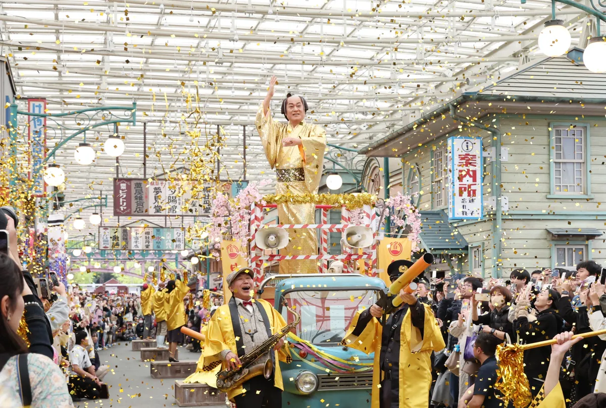 2025年4月26日、西武園ゆうえんち(埼玉県所沢市)で、「昭和100年大祭典」の幕開けを祝う特別イベント「ゴールデン・マツケン祭(サンバ)」が開催されました。この祭典では、松平健さんが登場し、来場者たちと共に盛大に祝いを行いました。