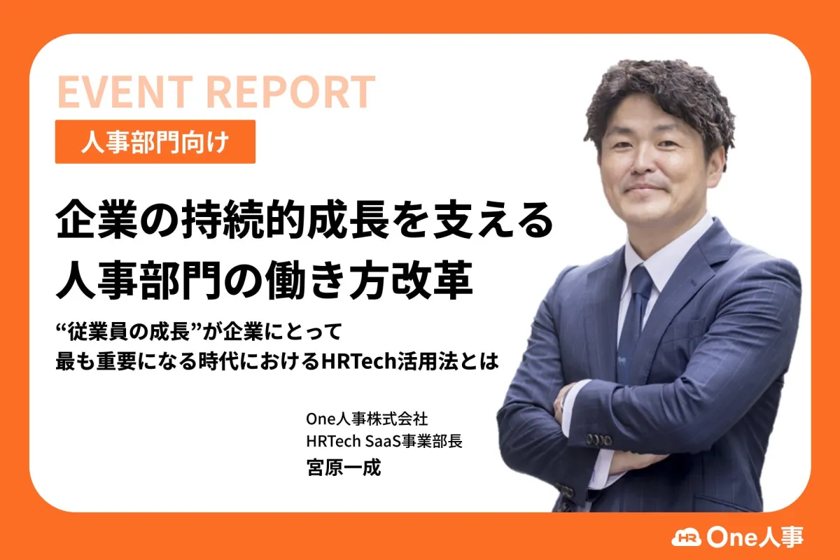 2024年10月18日に開催された「第2回 HR Leaders CAMP 2024」において、One人事株式会社のHRTech SaaS事業部長・宮原一成氏が登壇しました。本イベントでは、企業と従業員の持続的な成長を支えるために必要な人事部門の働き方改革について議論されました。