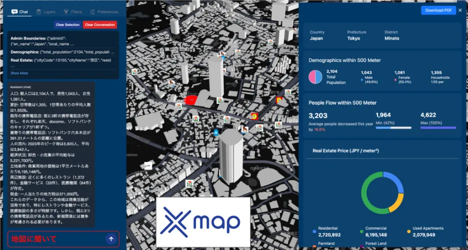 2023年12月に設立されたxMap株式会社は、生成AIを活用したロケーション・インテリジェンス・プラットフォームの展開を国際的に拡大すると発表しました。このプラットフォームは企業や政府機関に対して、リアルな世界での重要な意思決定を迅速かつ確実に行うための支援を提供します。