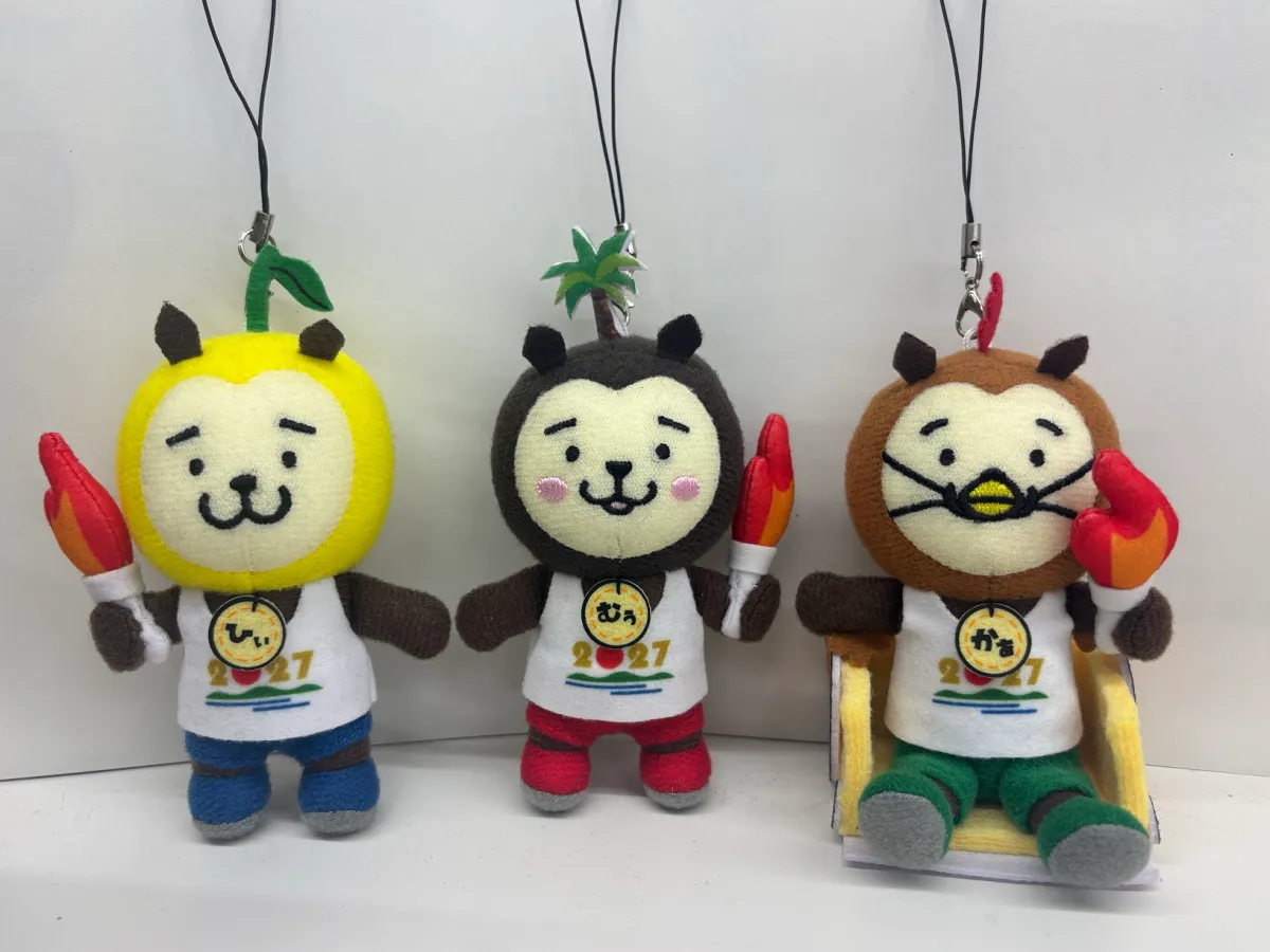 発売されるのは、開催年「2027」をデザインしたランニングシャツを着た「ひぃくん」「むぅちゃん」「かぁくん」の3種類のマスコットです。独特のデザインには、国スポ・障スポのテーマにちなんだ要素が盛り込まれており、例えば、車いすに乗った「かぁくん」など特別な仕様となっています。