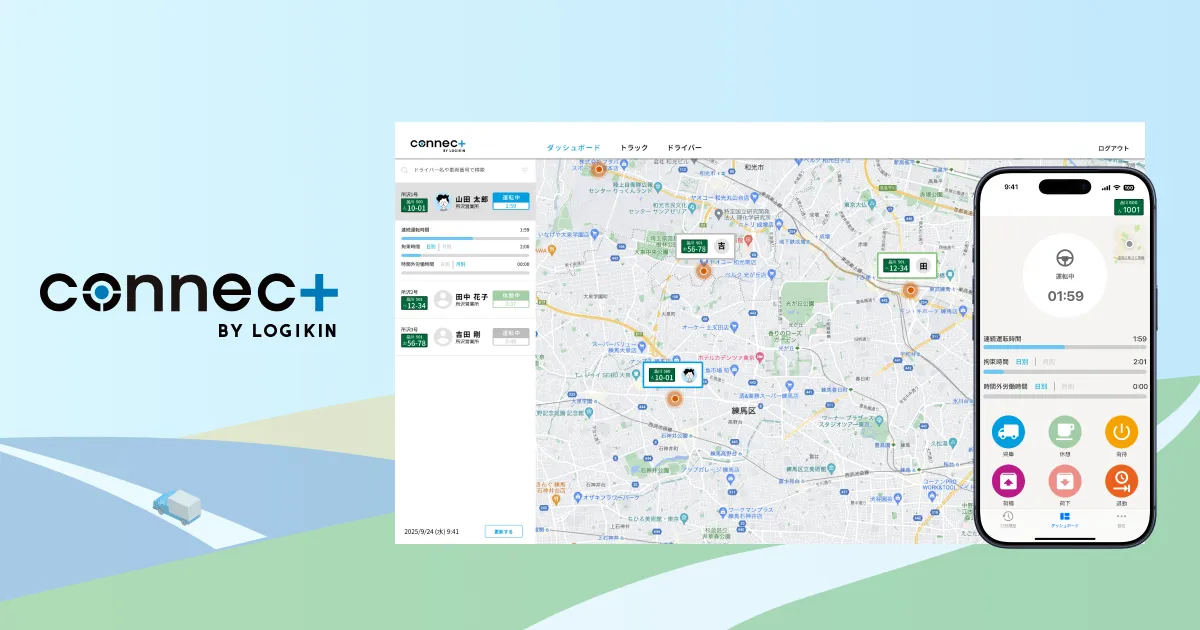 「connec+」という名称には、現場と管理者のつながりだけでなく、持続可能な未来を想う気持ちが込められています。運送業向け勤怠管理ソフト「勤怠ドライバー」との連携で、より高度なサービスを提供し、幅広いシステムとの柔軟な連携を図る方針を示しています。