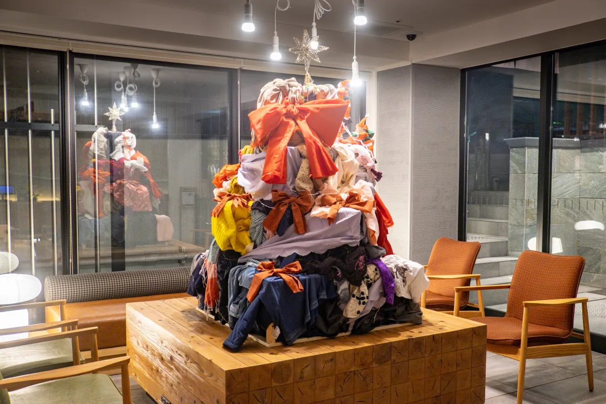 「ASAI」という名前は、タイ語で「地元の人と共に生きる」という意味です。この精神を体現するために、ASAI京都四条では地域の皆様や宿泊客から寄せられた不要な衣類を元に、サステナブル・クリスマスツリーを飾り付けました。このツリーは、地域コミュニティとのつながりを深めることを目指し、皆で作り上げる温かいフェスティブシーズンを演出しています。
