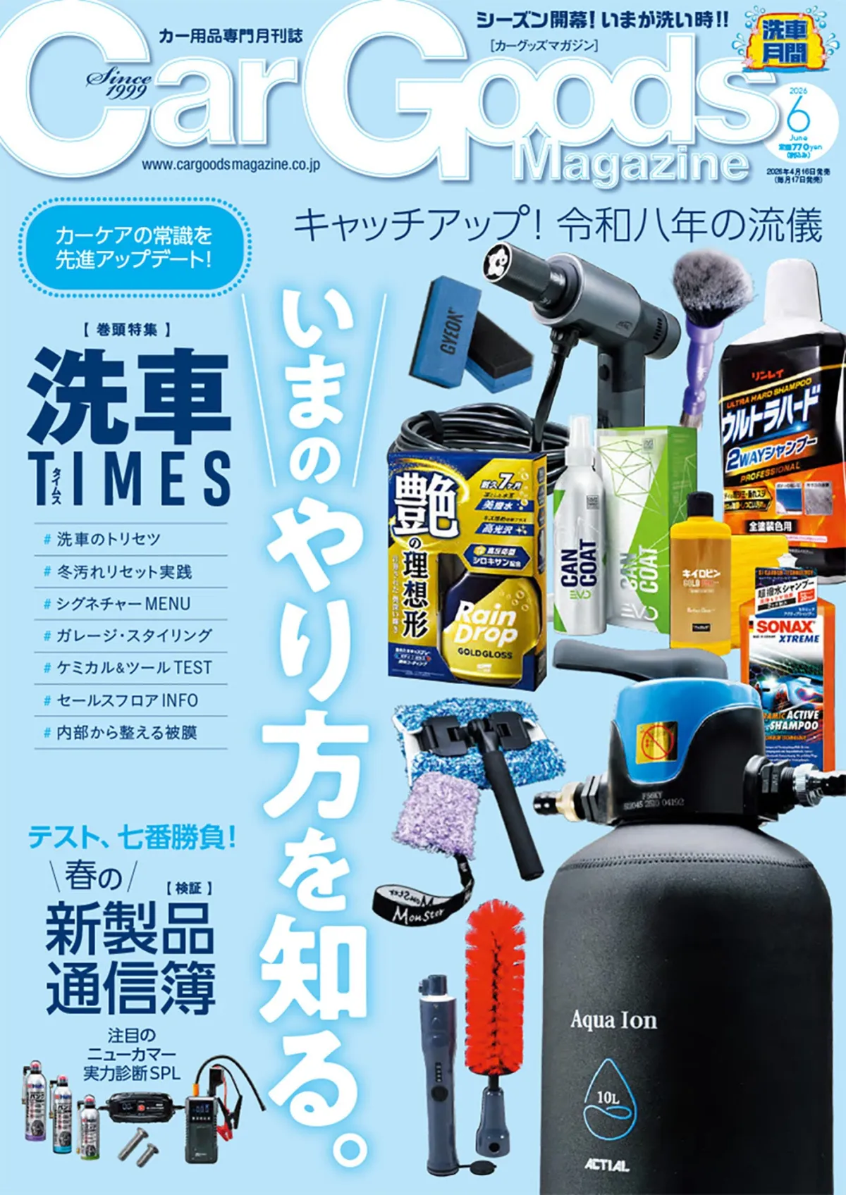 『カーグッズマガジン』2026年6月号は、洗車季節を迎えるにあたり、カーライフを充実させるための必携アイテム的存在です。これからのカーライフを安全で快適に過ごすための情報を提供し続ける本誌を、ぜひ手に取ってご覧ください。
