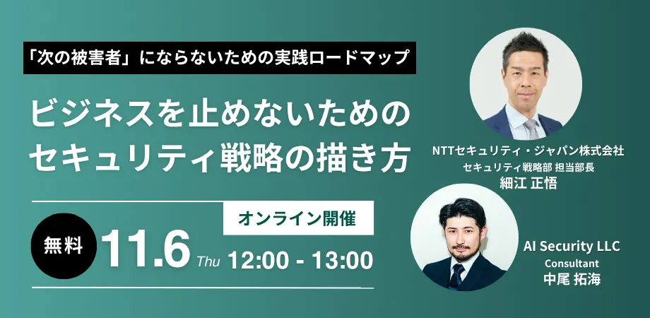 2025年11月6日、NTTセキュリティ・ジャパン株式会社とAIセキュリティ合同会社は、「次の被害者」にならないためのセキュリティ戦略セミナーを共同開催します。このセミナーは、増大するサイバーリスクの中で、ビジネスを健全に運営するためのセキュリティ対策を学ぶ貴重な機会です。